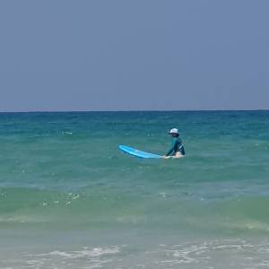בפעם השנייה נכנסתי גם לחצי שעה, ים סופר נמוך, בעיקר לחתור ולשבת. העזתי לקחת כמה גלים קטנים למרות הכאב בעצם החיק, שזה היה הסופר סטאר במהלך כל ההריון מסתבר.